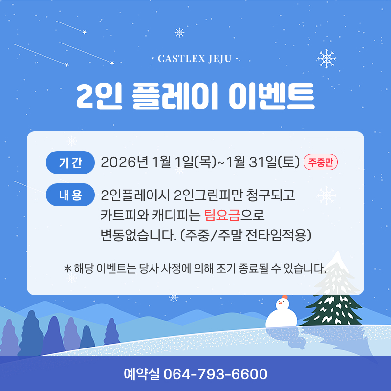 26년 2월 골프예약일 안내(캐슬렉스제주 회원님 예약만 적용)