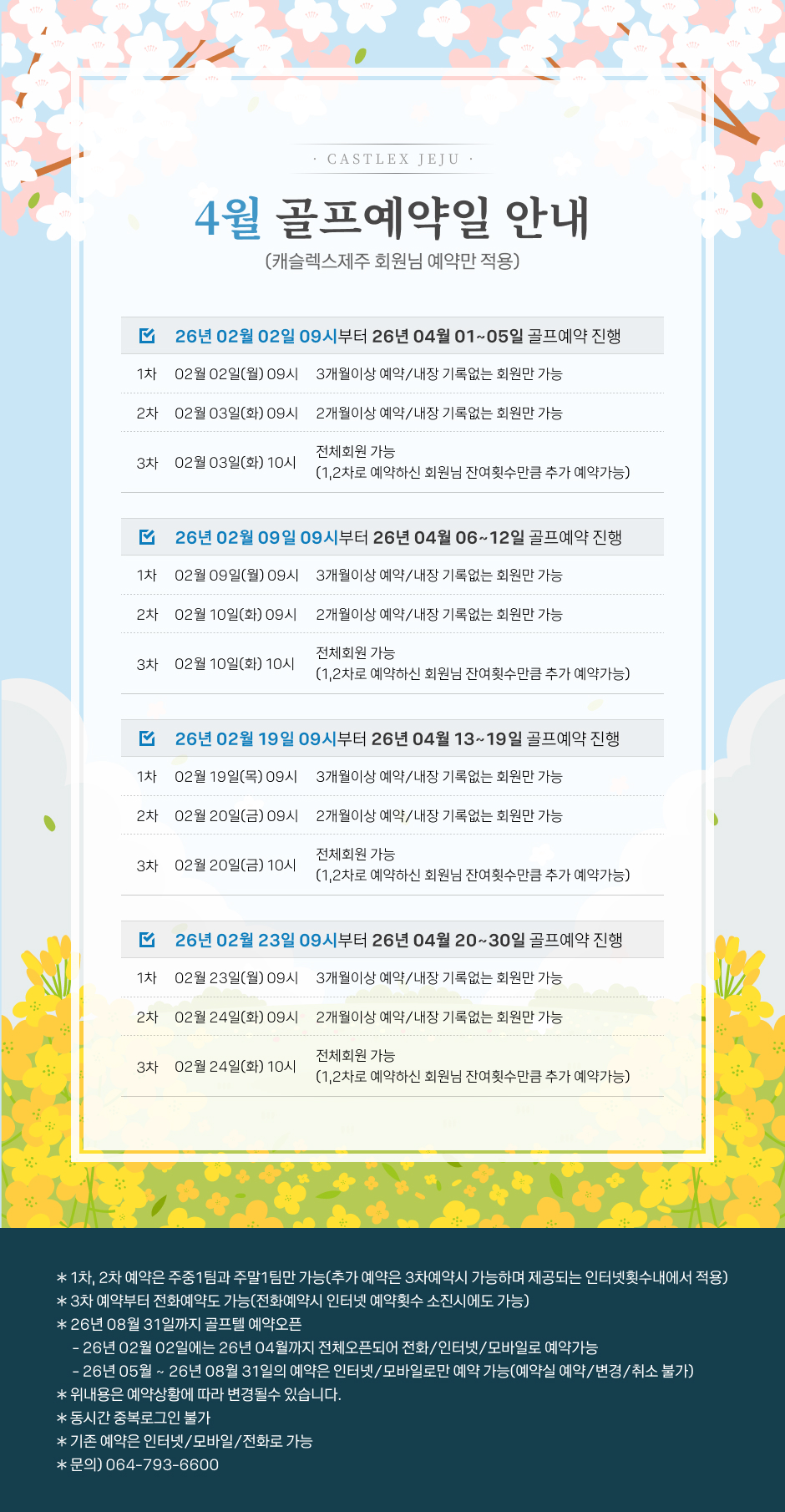 26년 4월 골프예약일 안내(캐슬렉스제주 회원님 예약만 적용)