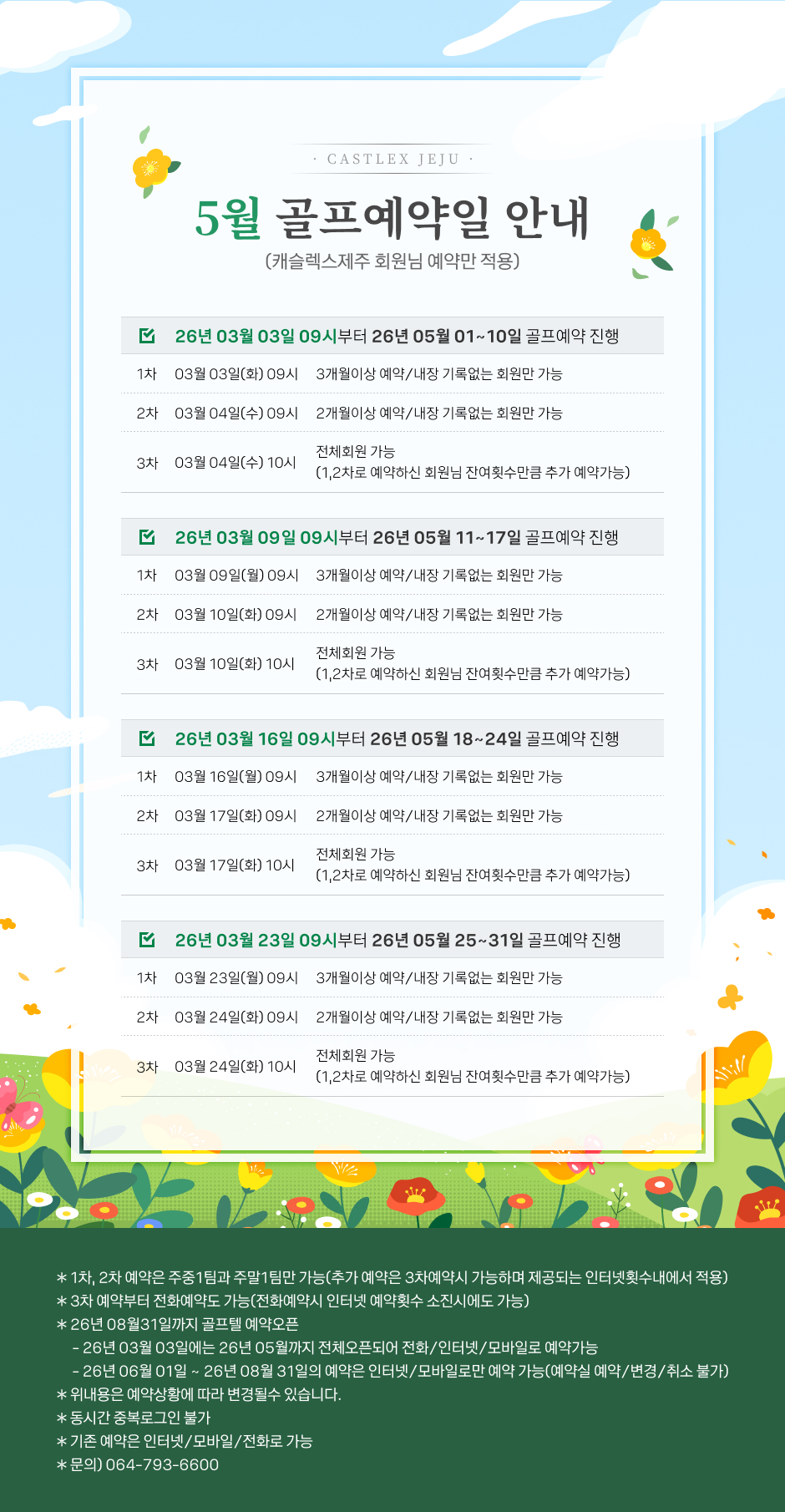 26년 5월 골프예약일 안내(캐슬렉스제주 회원님 예약만 적용)
