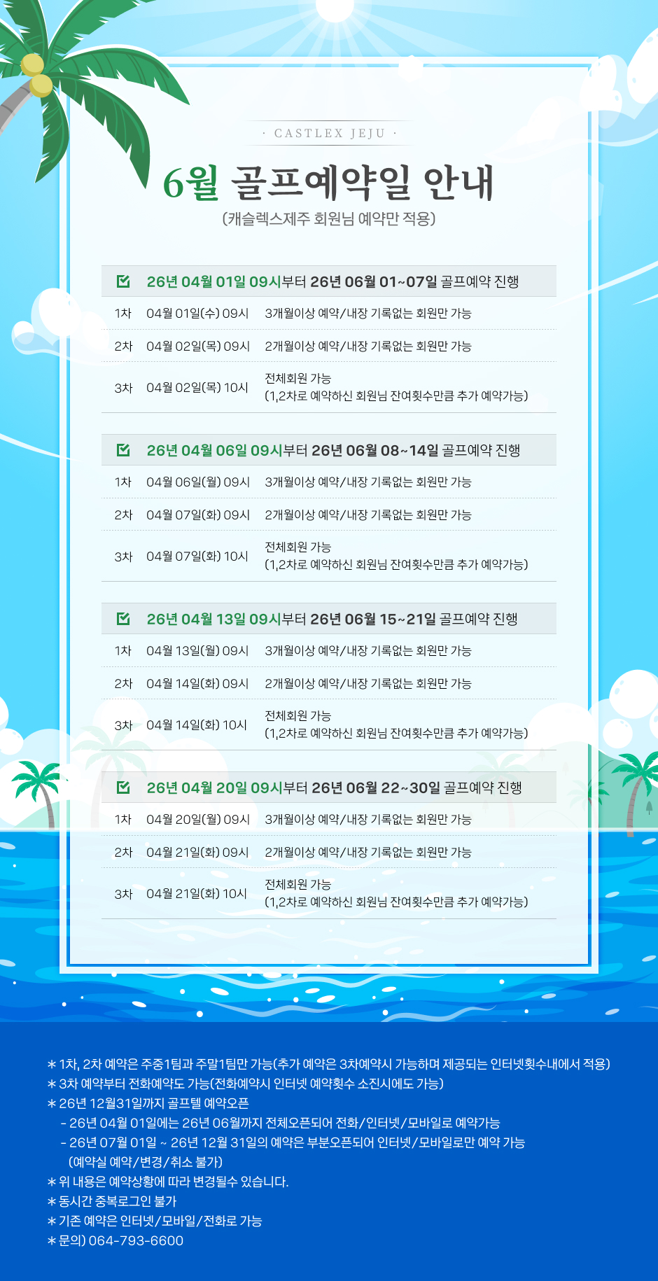 26년 6월 골프예약일 안내(캐슬렉스제주 회원님 예약만 적용)